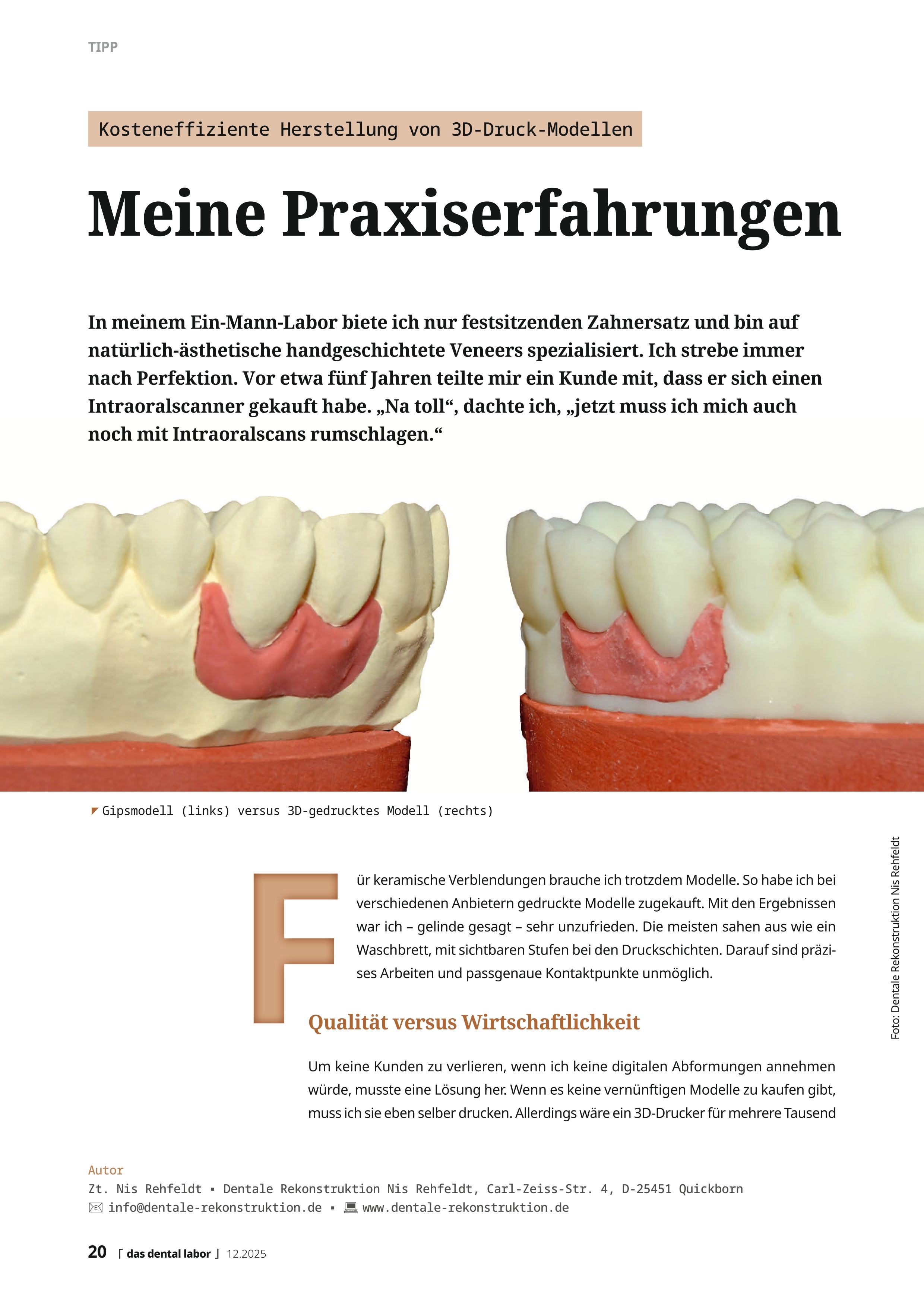 Fachbeitrag und Bericht über Dentale Rekonstruktion Nis Rehfeldt als erster Majesthetiker: