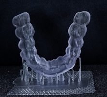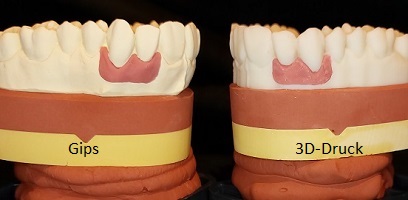 massiv gedruckt und wie ein herkömmlicher Zahnkranz aus Gips weiterzuverarbeiten.